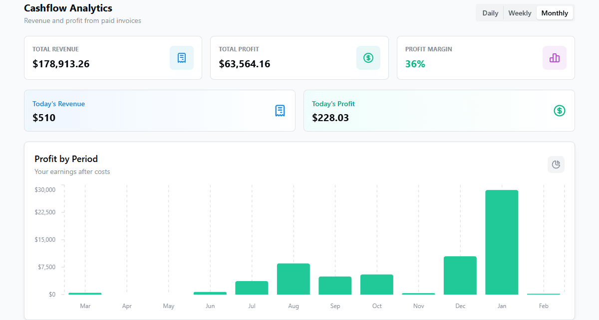 View detailed reports on sales, invoices, and profitability so you can track performance and make informed business decisions.
